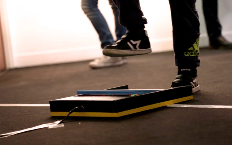 Hoki Doki est un jeu de hockey sur table circulaire, rapide et coloré, imaginé dans le cadre de l’appel à création du Random Bazar Festival. Jusqu’à dix joueurs s’affrontent sur des pédales, en tentant d’éviter une balle rebondissante en sautant au bon moment pour rester en jeu. La balle vient peut à peut peindre une toile sur le plateau de jeu, laissant une trace artistique unique à chaque partie.
